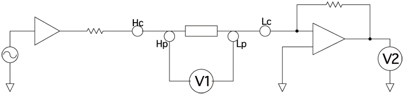 通過檢測電阻將流過被測物的電流進(jìn)行電壓轉(zhuǎn)換并檢測。讓Lc端子的電位保持為OV。