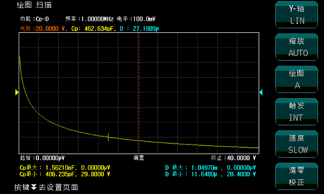 主要用于測試半導(dǎo)體器件PN結(jié)的勢壘電容在不同偏壓(V)下的電容量(C)。ZX38A-CV半導(dǎo)體C-V特性測試儀除了可以連接電腦上位機軟件掃描分析功能外,還提供在儀器大屏液晶顯示器上直接顯示C-V掃描曲線分析功能。這樣客戶不再需要為每臺儀器配置一臺電腦。這種方式既保證了測試效率,又降低了測試成本、還方便客戶在生產(chǎn)線上使用。還可以把儀器屏幕上顯示圖形和測試數(shù)據(jù)直接拷貝到U盤。